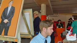 Beilen - De Beiler kunstenaar Martin Pottjewijd bekijkt vlak voor de opening van de expositie 'Ons Koningshuis' nog even zijn kunstwerk, een fictief paleis van het koningshuis. Op de tentoonstelling hangen ongeveer negentig kunstwerken die betrekking hebben op het koningshuis. Ruim de helft ervan is van de hand van Drentse en soms Midden-Drentse kunstenaars. Veelal schilderijen en enkele beelden. Het werk is tot 21 juni te zien in de tijdelijke galerie in Markant aan de Markt. - Foto: Foxtxt/Ron de Vos